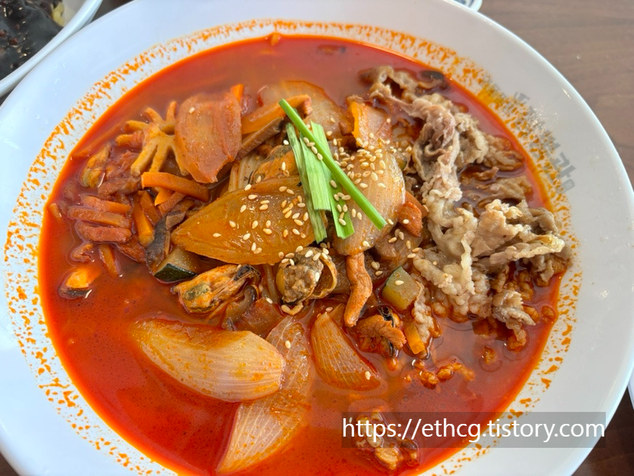 차돌짬뽕이라 약간 기름지지만 얼큰한 짬뽕맛으로