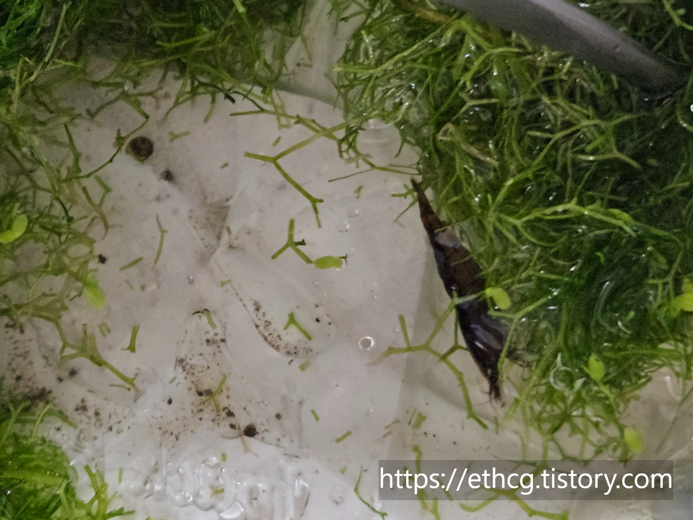 - 생이새우 한 마리가 몰래(?) 따라와서 예상치 못한 생물 입양