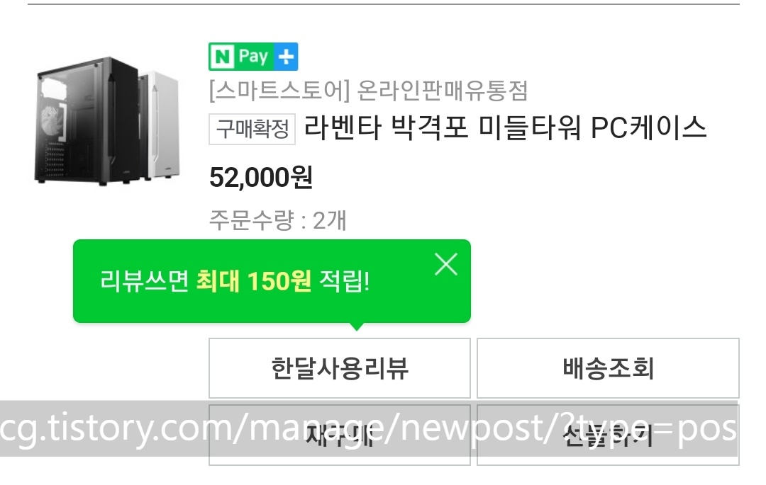 6) 케이스 미들 타워 PC케이스로 2개 해서 5만 2천 원 / 1개 2만 8천 원 배송비 포함 해서 구입하였습니다.