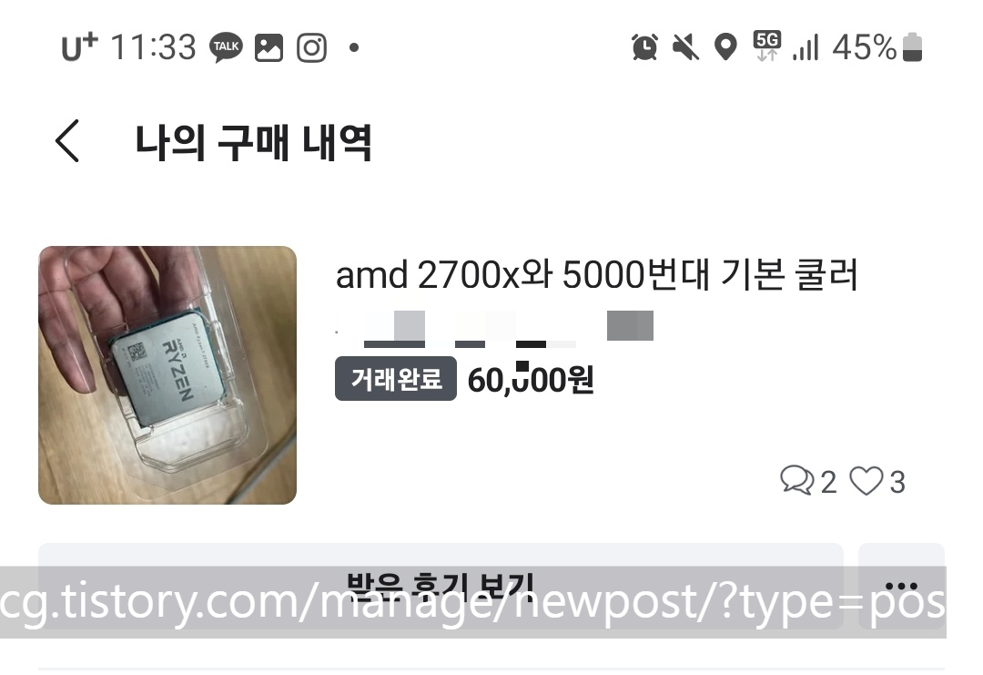 1) 2700X CPU 중고 6만 원