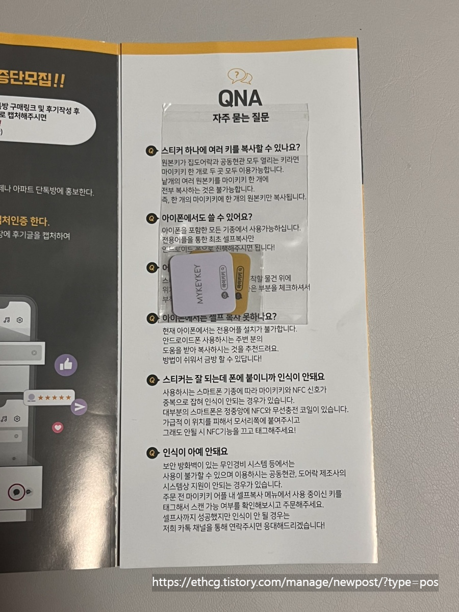 설명서와 마이키키 2장이 왔어요