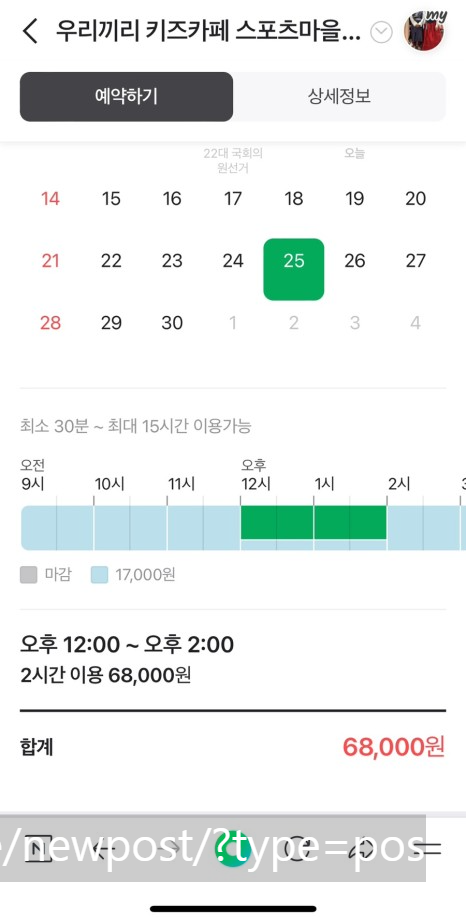 네이버 예약으로 날짜,시간을 지정하고 결제하면