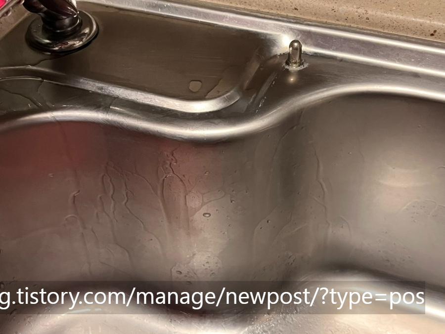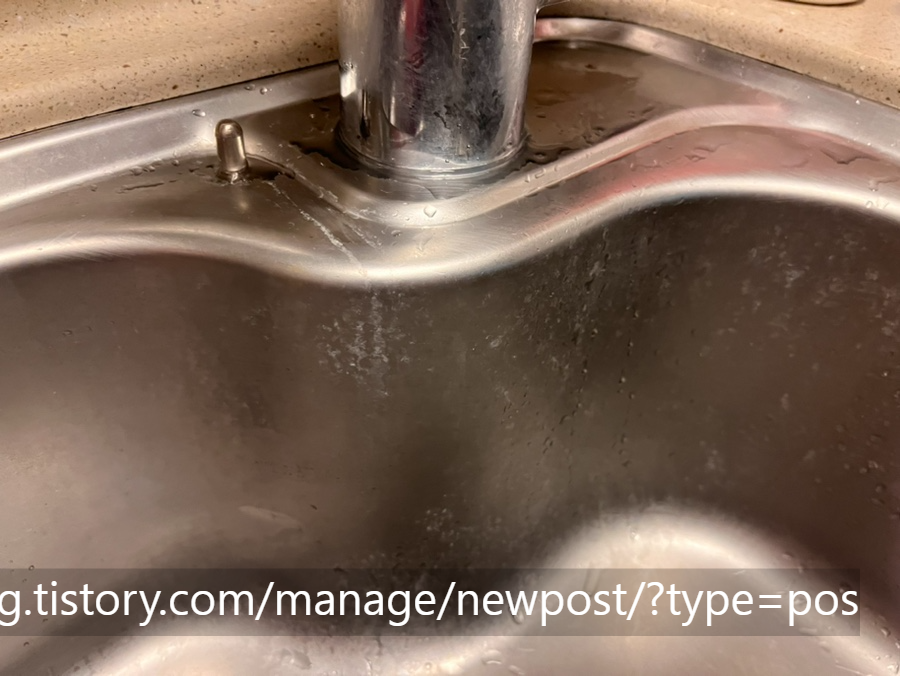 싱크대에 물이 마르면 흰 물때가 잔뜩 생기고 광택도 없고