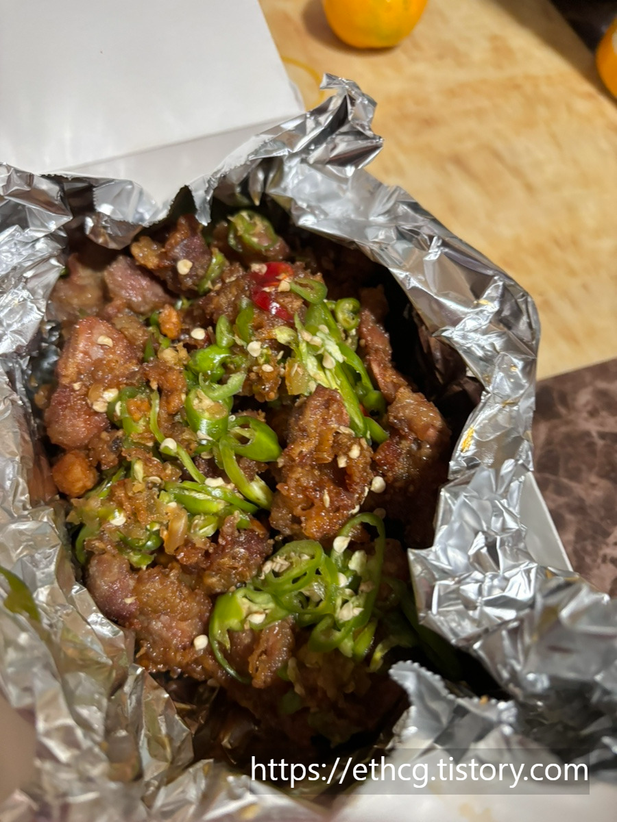 하지만 오늘은 땡초닭똥집세트를 주문했어요